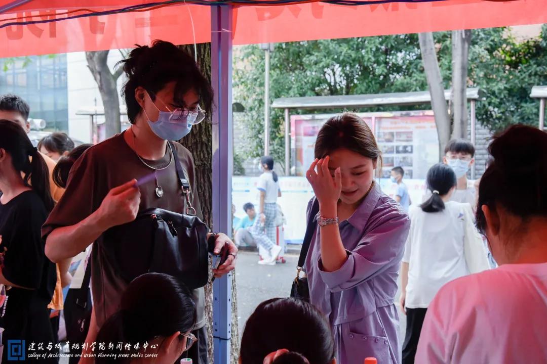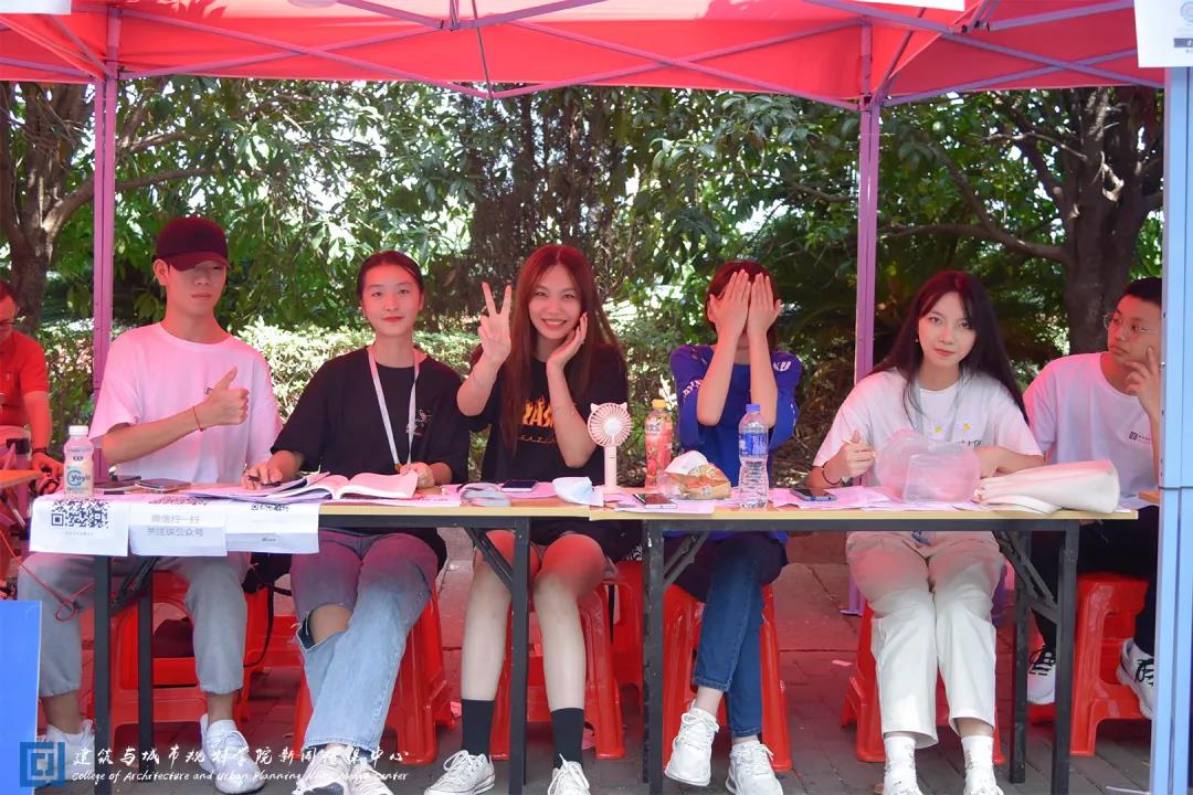 等待新生报道的迎新工作者