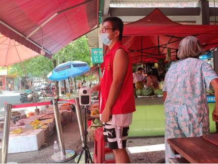 2021年8月19号,邓扬同学在湖南省邵阳市北塔区的资园社区担任志愿者,对资园社区所管理的江北大市场所有的进出人员进行信息登记,包括地址、体温、家庭住址、健康码颜色及是否接种疫苗。