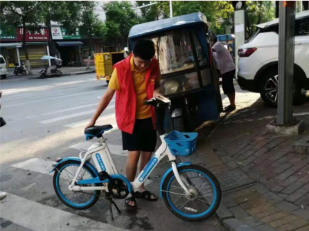 2021年8月4日,伍征同学在湖南省衡阳市耒阳市沿江路担任交通劝导员,对耒阳市第二中学前的十字路口不遵守交通规则的行人进行了文明劝导,归位了路边乱停乱放的共享单车。