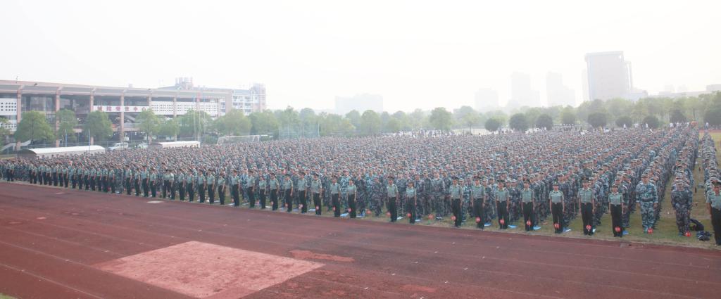 开学典礼后,公司举行了2019级新生军训动员大会。(王宗新)