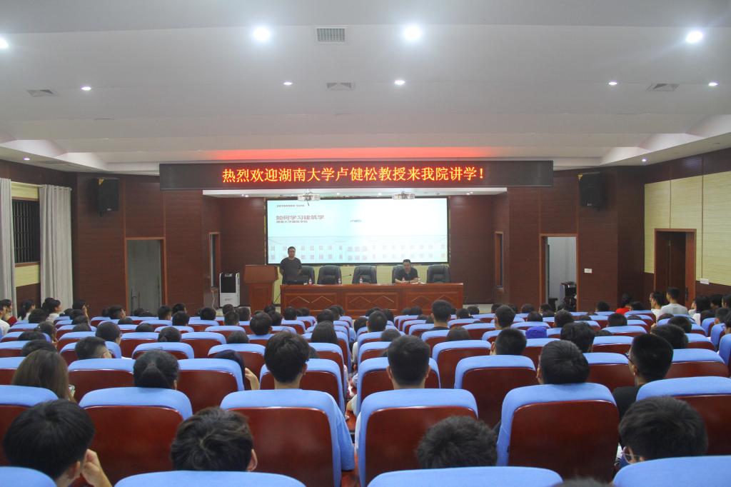2019年9月8日晚7:30,球速体育在建筑规划楼121报告厅举行“如何学习建筑学”专题讲座。本次专题讲座由湖南大学建筑系教授卢健松主讲,公司党委副书记蔡英杰主持。