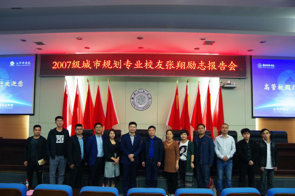 2019年5月9日下午2:30,2007级城乡规划专业员工张翔励志报告会在图书馆报告厅举行。参加此次会议的有太平洋建设董事局副主席以及二十二集团主席张翔、总裁刘兆鑫、机关负责人兼CHO蒋思逸、副总裁孙运超、湖南城市公司党委委员李斌及公司党委副书记郭绚霞,此次会议由球速体育员工办主任李志宏主持。