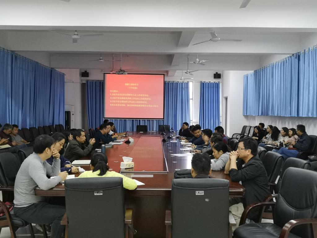2018年9月27日下午2:30,球速体育按公司统一要求组织全院教职工在建规楼402会议室进行集中政治理论学习。此次全院教职工集中政治学习由建规公司党委书记项龙武主持。